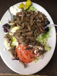 Greek salad topped with gyro meat or marinated chicken. Served with tzatziki & house vinaigrette.